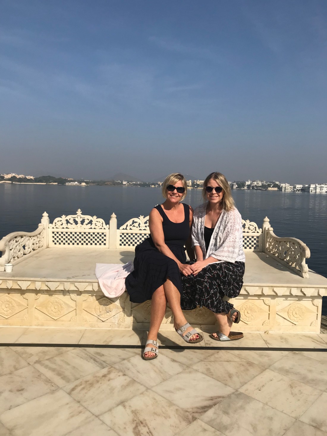 After freshening up at our hotel we ventured out again in a tuk tuk (my heart sits in my mouth each time I step into one – I close my eyes, cling to Hannah and say a little prayer?). We had met a super girl from New Zealand in the queue at the Taj who recommended a rooftop restaurant called Rainbow and we found it – arrived just before sunset and the view on the lake was wonderful (picture attached). We had mentioned it to a lovely English couple we met during a roadside stop and they were there also. A lovely meal with a couple of G&Ts and all in all a perfect day. I still struggle with the hot food and every night I return to the hotel in search of the fire extinguishers.